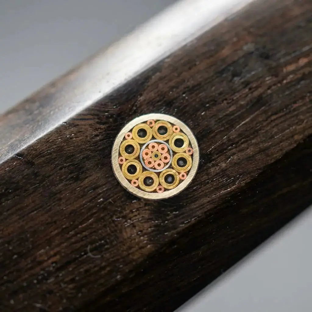 El mango de este cuchillo está elaborado con madera de ébano excepcional , seleccionada por su excepcional densidad y su profundo tono negro, símbolo perdurable de refinamiento y pureza. Cada pieza está meticulosamente tallada para revelar la nobleza natural del material, con sutiles variaciones que hacen que cada mango sea verdaderamente único.