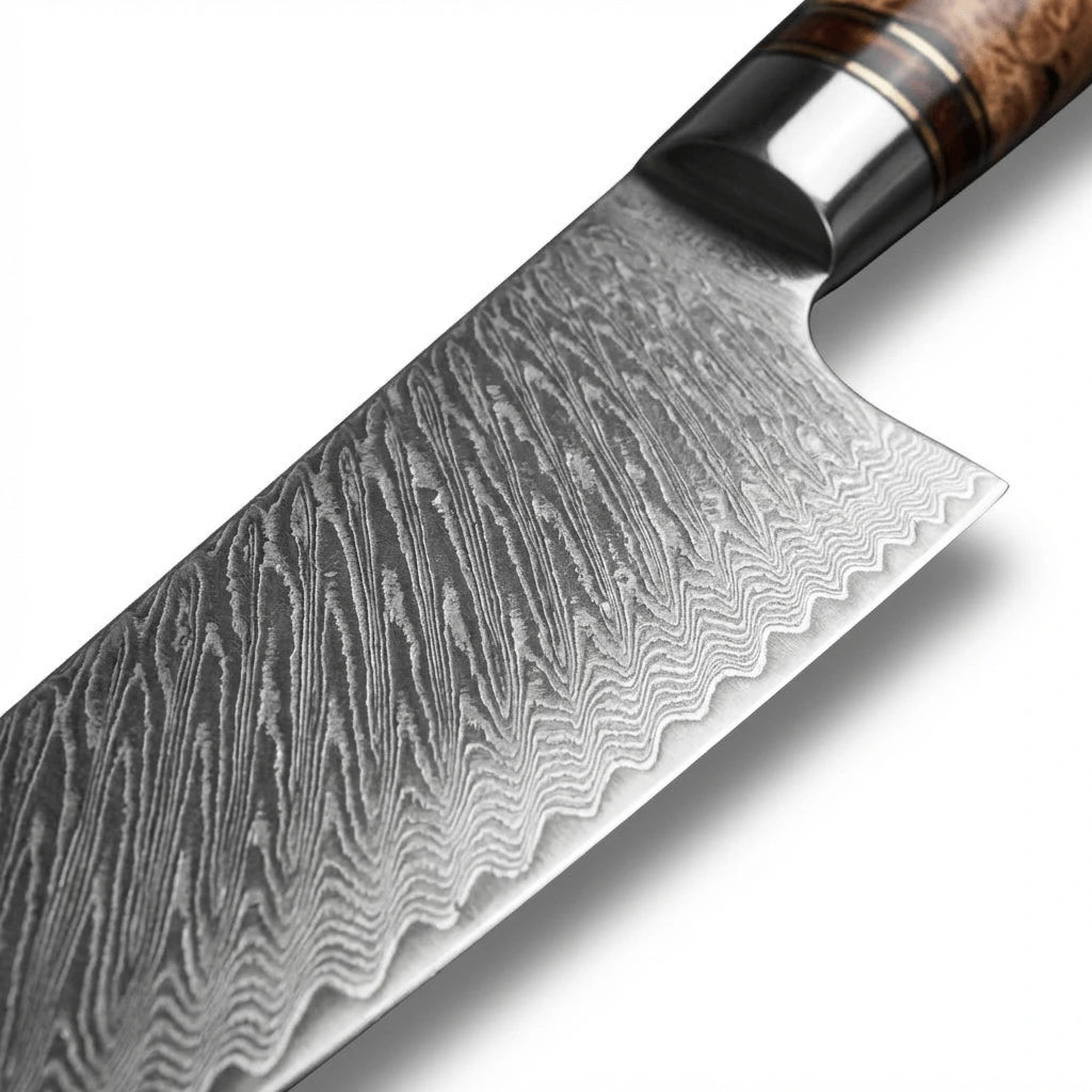 67 layers of Damascus steel (VG-10 steel core + 66 layers of Damascus steel)