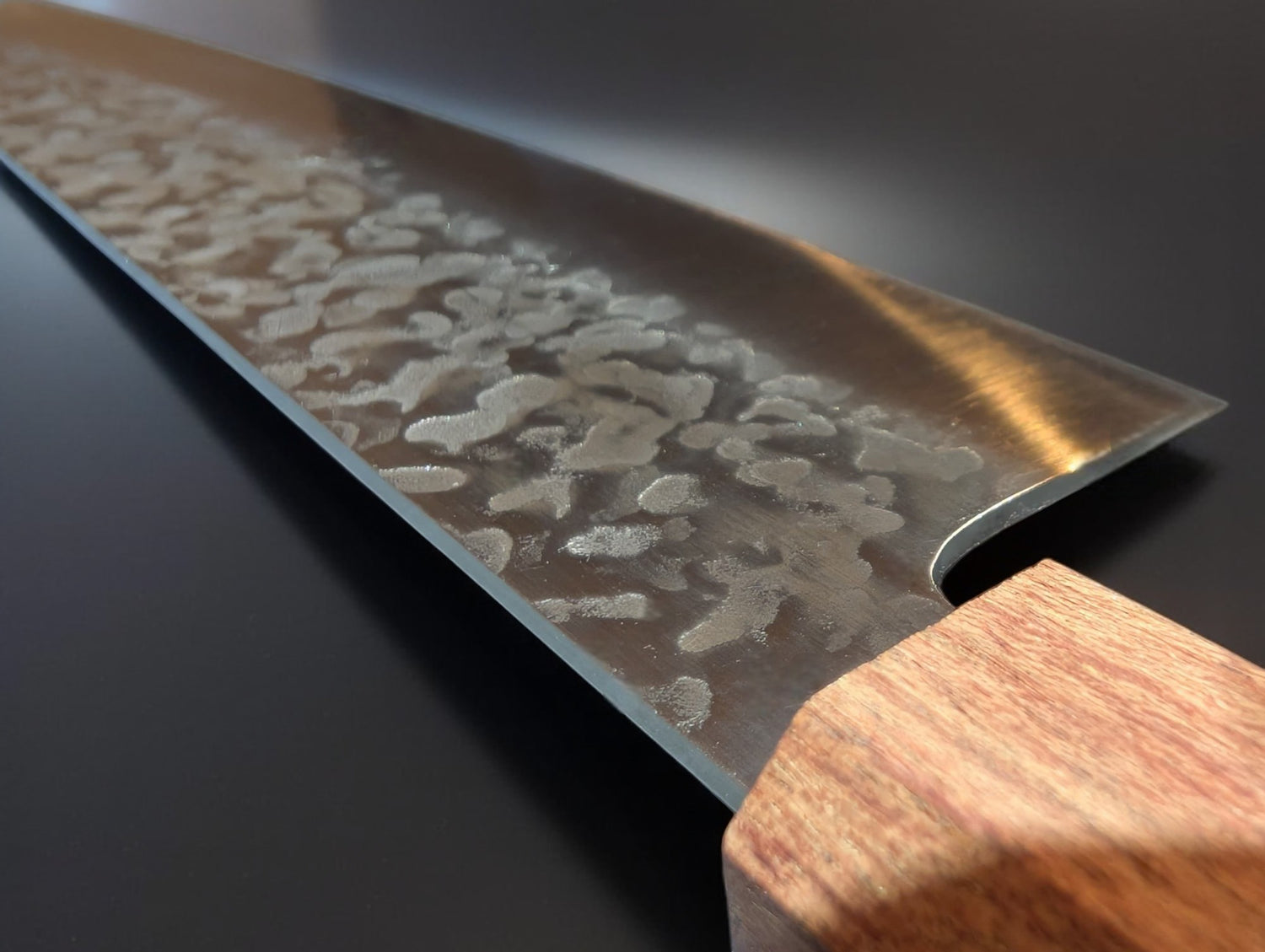 – Hammered non-stick finish for smooth, effortless slicing.